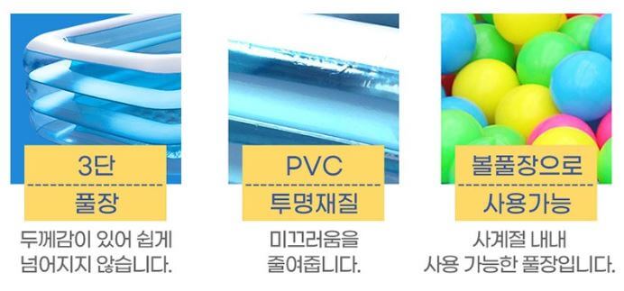 가정용 어린이 풀장 베터파크용으로 베스트웨이 3단 엠보싱 풀장을 추천드립니다. 해당 제품은 투명한 재질로 돼있어서 아이들이 안에서 잘 놀고 있는지 확인이 가능하며 폭신폭신하기 때문에 넘어져도 다칠 위험이 적다는 장점까지!