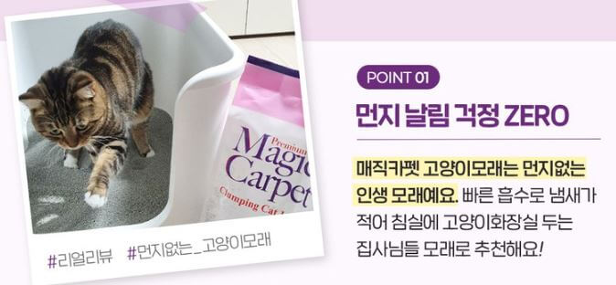 고양이를 키우는 집사님들에게 고양이 모래는 굉장히 중요한 사항입니다. 냄새가 없고 먼지도 적은 제품을 선호하는데요.