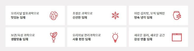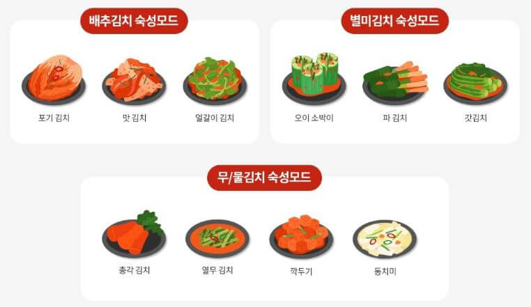 김치에도 다양한 종류가 있기 때문에 다양한 숙성모드가 있는 제품을 고르는 것이 좋습니다. 조상님들은 땅속에 김칫독을 묻어 김치를 보관했는데요. 지금은 땅속 발효가 여건상 굉장히 어렵기 때문에 땅속에 묻어둔 것처럼 맛있게 익히는 김치냉장고가 필수적입니다.