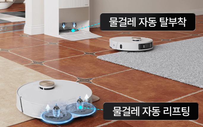 물걸레 로봇청소기의 단점으로는 물걸레 패드를 교체하는 것이 생각보다 번거롭다는 점입니다. 하지만 드리미 로봇청소기는 자동으로 탈부착하는 기능이 있기 때문에 물걸레 로봇청소기가 가진 유일한 단점을 완벽히 상쇄하였습니다.